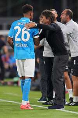 Napoli, Palermo Coppa Italia Nella foto: Alessio Dionisi, Antonio Conte Foto Mosca, Ag.Liverani -NAPOLI - PALERMO COPPA ITALIA 06.09.2024