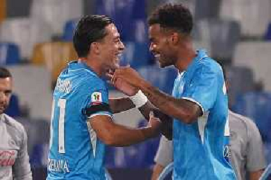 Napoli, Palermo Coppa Italia Nella foto: Filippo Ranocchia, Cyril Ngonge Foto Mosca, Ag.Liverani -NAPOLI - PALERMO COPPA ITALIA 26.09.2024