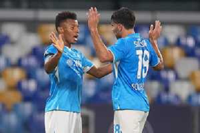 Napoli, Palermo Coppa Italia Nella foto: secondo gol Cyril Ngonge Foto Mosca, Ag.Liverani -NAPOLI - PALERMO COPPA ITALIA 26.09.2024