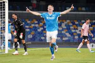 Napoli, Palermo Coppa Italia Nella foto: esultanza Scott McTominay Foto Mosca, Ag.Liverani -NAPOLI - PALERMO COPPA ITALIA 26.09.2024