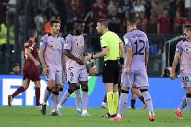 Roma vs Athletico Bilbao - Europa League - 1 giornata Stadio Olimpico - Roma 26-09-2024 nella foto Proteste Bilbao con arbitro Kabakov ©Federico Gaetano/AGENZIA ALDO LIVERANI SAS
