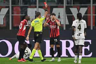 Milan vs Lecce nella foto l'arbitro Luca Zufferli di Udine espelle Davide Bartesaghi (Milan) Milano 27-09-2024 Stadio Giuseppe Meazza - San Siro Campionato Serie A Enilive - 6a giornata foto Roberto Garavaglia/Agenzia Aldo Liverani sas/AGENZIA ALDO LIVERANI SAS