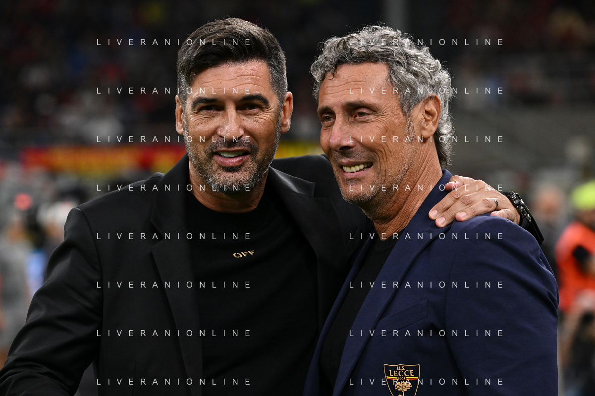 Milan vs Lecce nella foto Paulo Fonseca allenatore Milan SX e Luca Gotti allenatore Lecce DX Milano 27-09-2024 Stadio Giuseppe Meazza - San Siro Campionato Serie A Enilive - 6a giornata foto Roberto Garavaglia/Agenzia Aldo Liverani sas/AGENZIA ALDO LIVERANI SAS