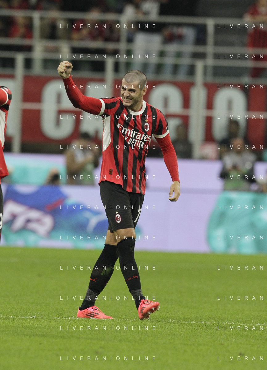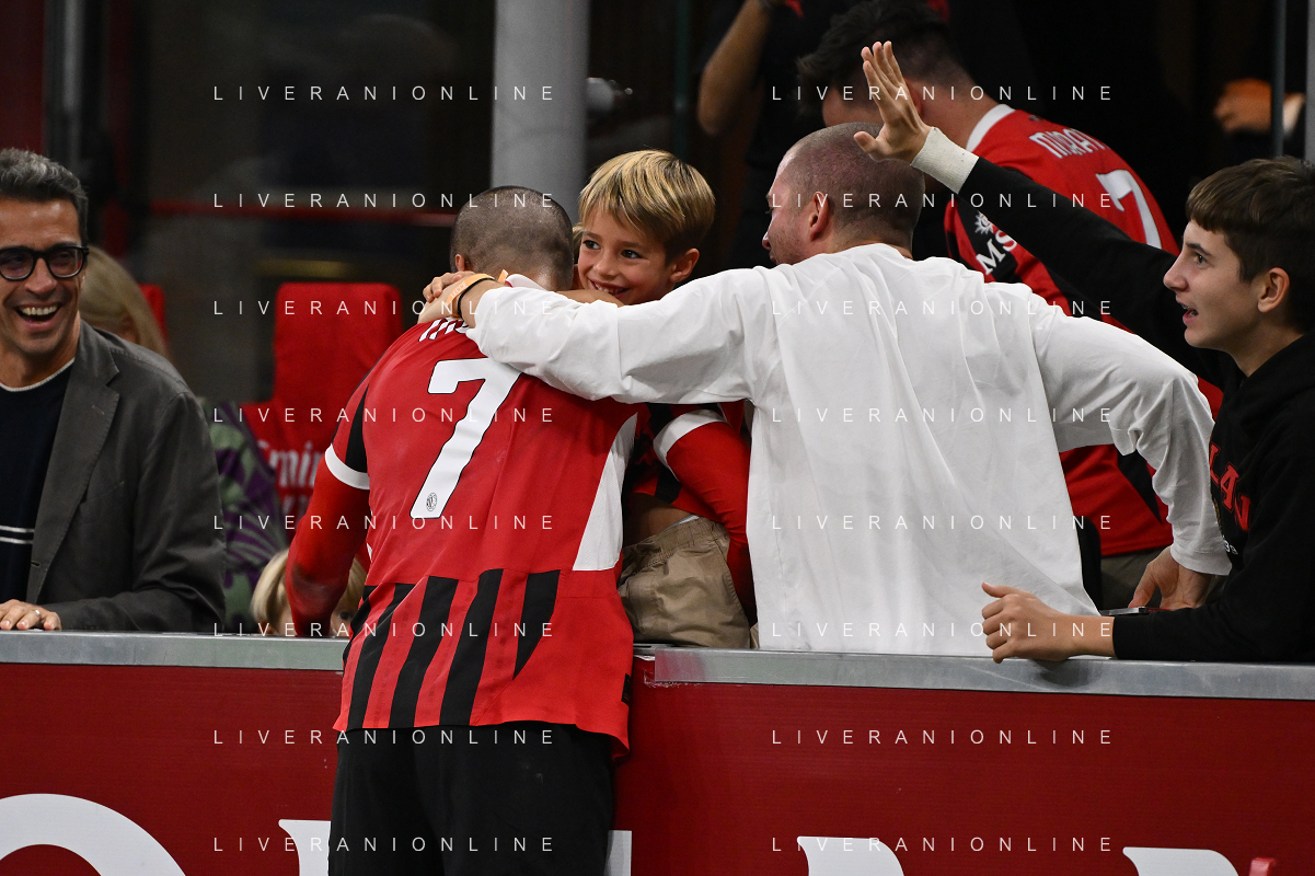 Milan vs Lecce nella foto esultanza Milan dopo il gol del 2 a 0 Milano 27-09-2024 Stadio Giuseppe Meazza - San Siro Campionato Serie A Enilive - 6a giornata foto Roberto Garavaglia/Agenzia Aldo Liverani sas/AGENZIA ALDO LIVERANI SAS
