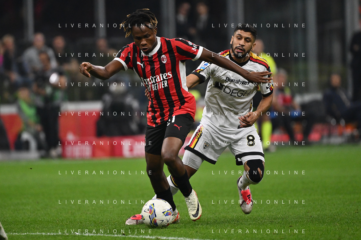 Milan vs Lecce nella foto Samuel Chukwueze (Milan) e Hamza Rafia (Lecce) Milano 27-09-2024 Stadio Giuseppe Meazza - San Siro Campionato Serie A Enilive - 6a giornata foto Roberto Garavaglia/Agenzia Aldo Liverani sas/AGENZIA ALDO LIVERANI SAS