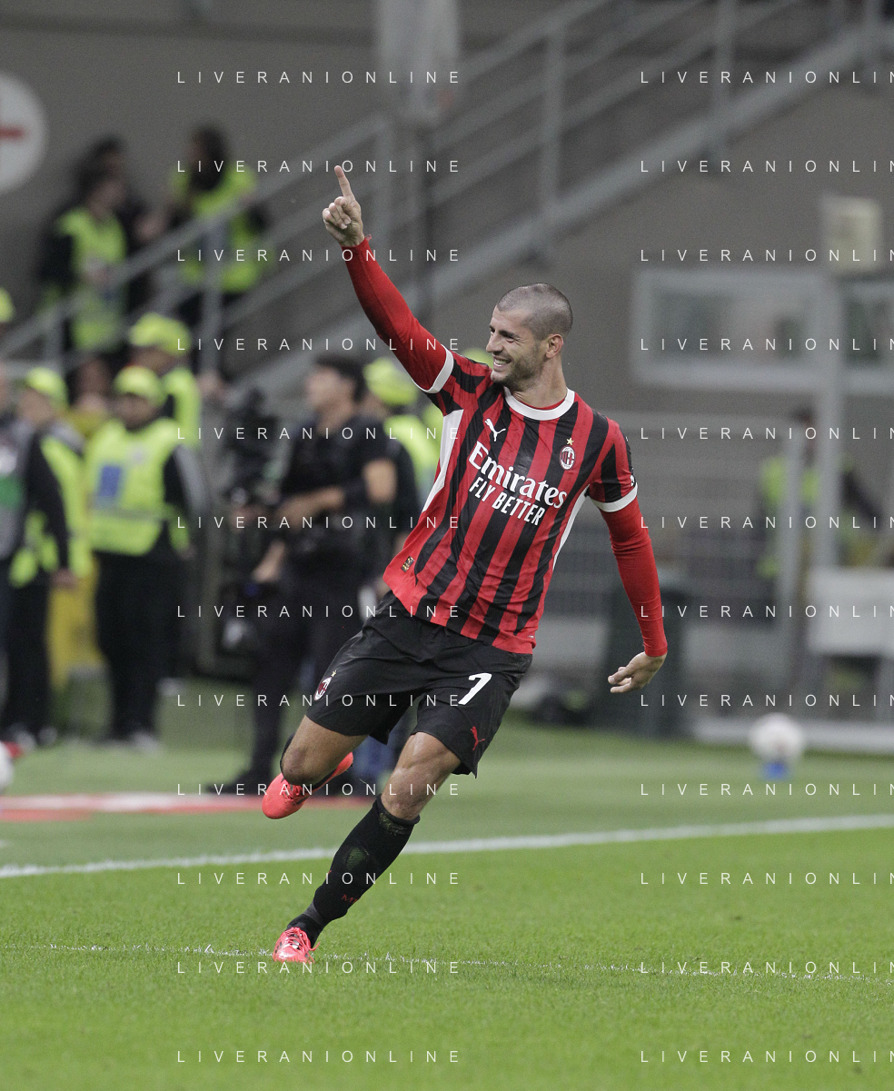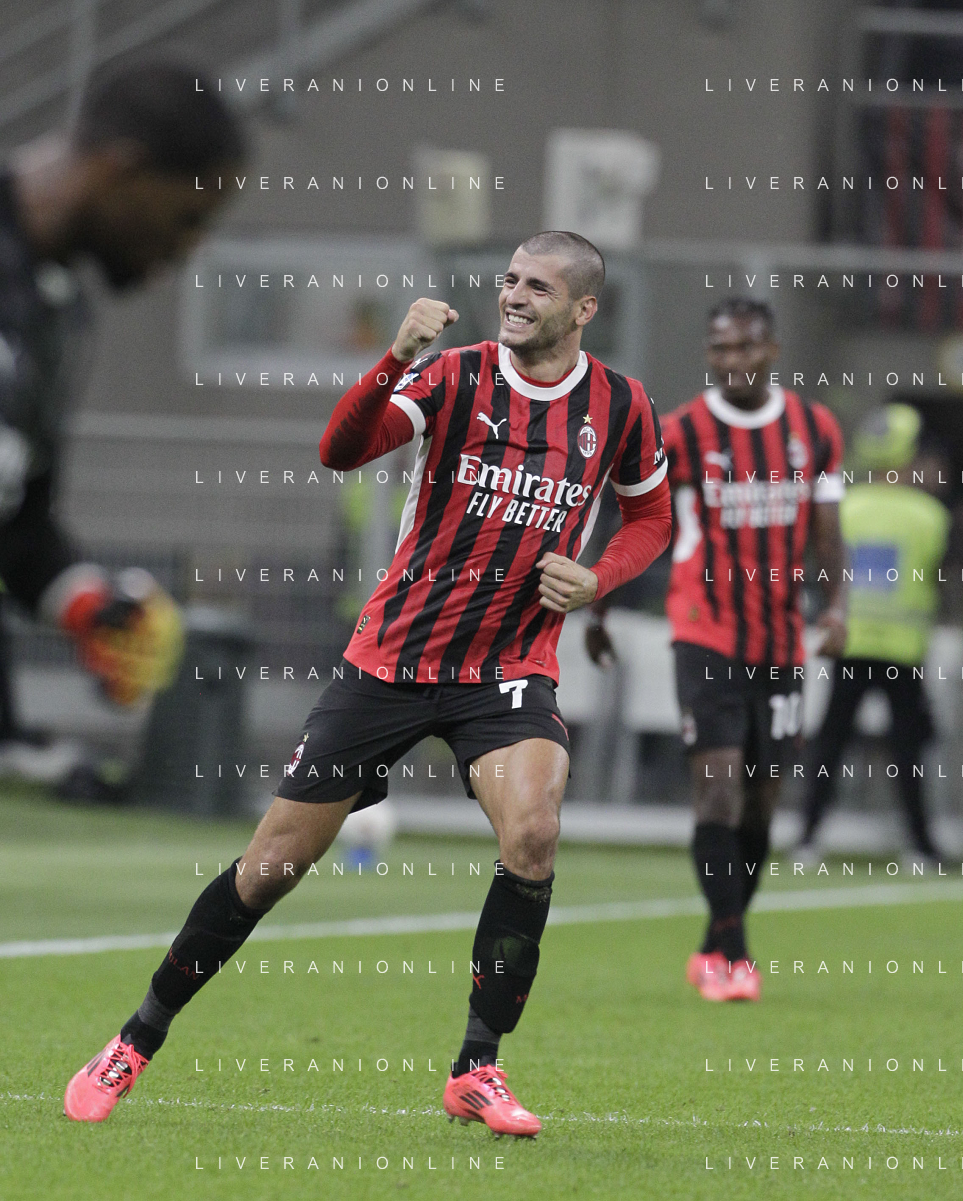 Milan vs Lecce nella foto Alvaro Morata (Milan) esultanza dopo il gol dell'1 a 0 Milano 27-09-2024 Stadio Giuseppe Meazza - San Siro Campionato Serie A Enilive - 6a giornata foto Roberto Garavaglia/Agenzia Aldo Liverani sas/AGENZIA ALDO LIVERANI SAS