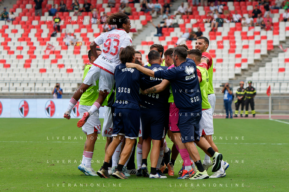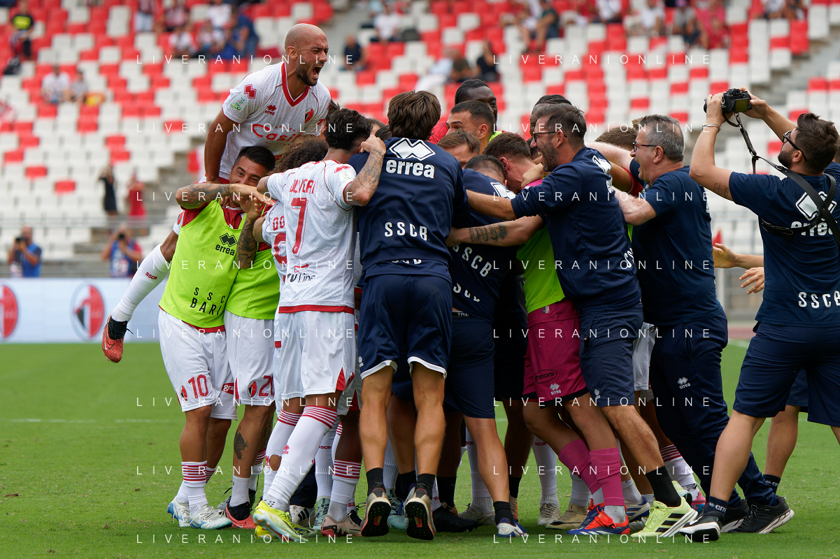 TVEM September 28, 2024 Bari, Italy - SSC Bari vs Cosenza Calcio - Italian soccer serie B 2024/25 - San Nicola Stadium. In the pic: Raffaele Pucino of SSC Bari celebrates after scoring a goal with teammates ©Emmanuele Mastrodonato/AGENZIA ALDO LIVERANI SAS