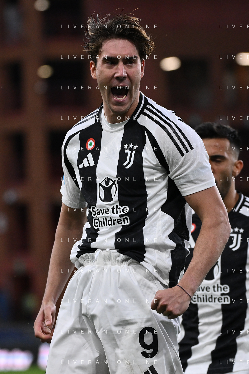 Genoa vs Juventus nella foto Dusan Vlahovic (Juventus) esultanza dopo il gol dell'1 a 0 Genova 28-09-2024 Stadio Luigi Ferraris - Marassi Campionato Serie A Enilive - 6a giornata foto Roberto Garavaglia/Agenzia Aldo Liverani sas