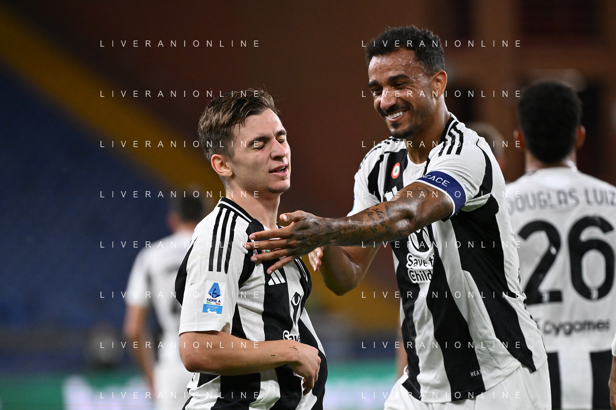 Genoa vs Juventus nella foto Francisco Conceicao (Juventus) SX e Danilo Luiz Da Silva (Juventus) DX esultanza dopo il gol del 3 a 0 Genova 28-09-2024 Stadio Luigi Ferraris - Marassi Campionato Serie A Enilive - 6a giornata foto Roberto Garavaglia/Agenzia Aldo Liverani sas