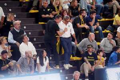 IMOLA 29 09 2024 VIRTUS IMOLA BASKET-SAN VENDEMIANO SERIE B1 72 60 NELLA FOTO ALLENATORE GIANLUIGI GALETTI E DIRIGENTE GABRIELE TORREGGIANI DOPO LA PARTITA FOTO GIANNI SANNA-AG ALDO LIVERANI SAS