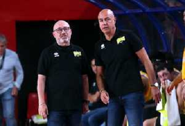 IMOLA 29 09 2024 VIRTUS IMOLA BASKET-SAN VENDEMIANO SERIE B1 72 60 NELLA FOTO ALLENATORE VIRTUS IMOLA GIANLUIGI GALETTI VICE AKI ZARIFI FOTO GIANNI SANNA-AG ALDO LIVERANI SAS