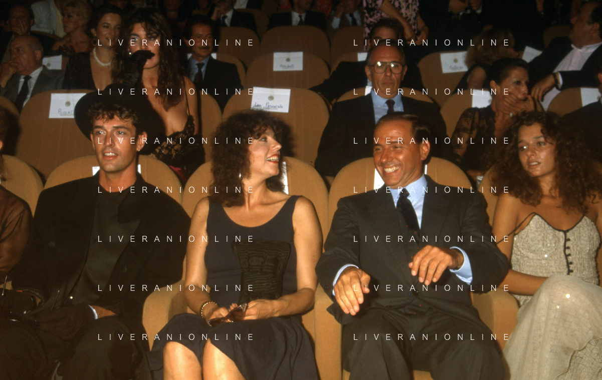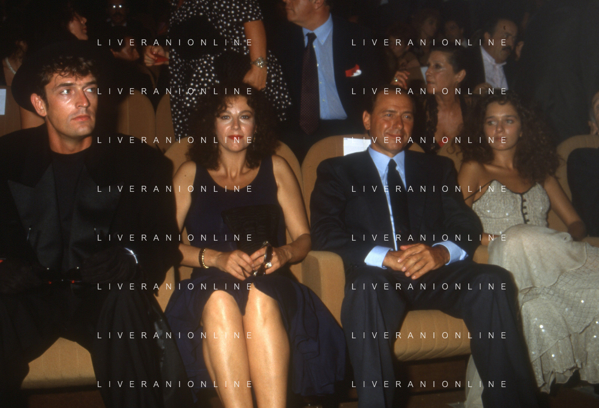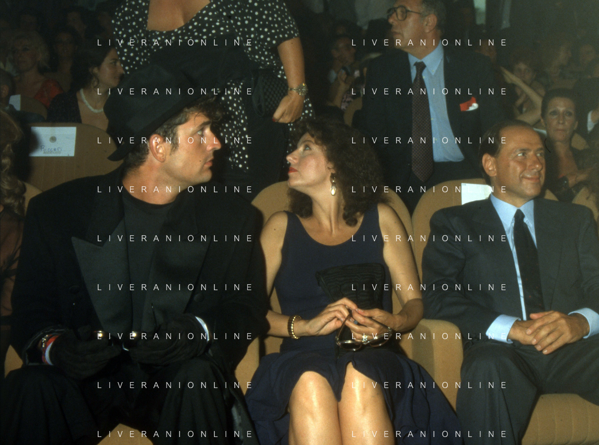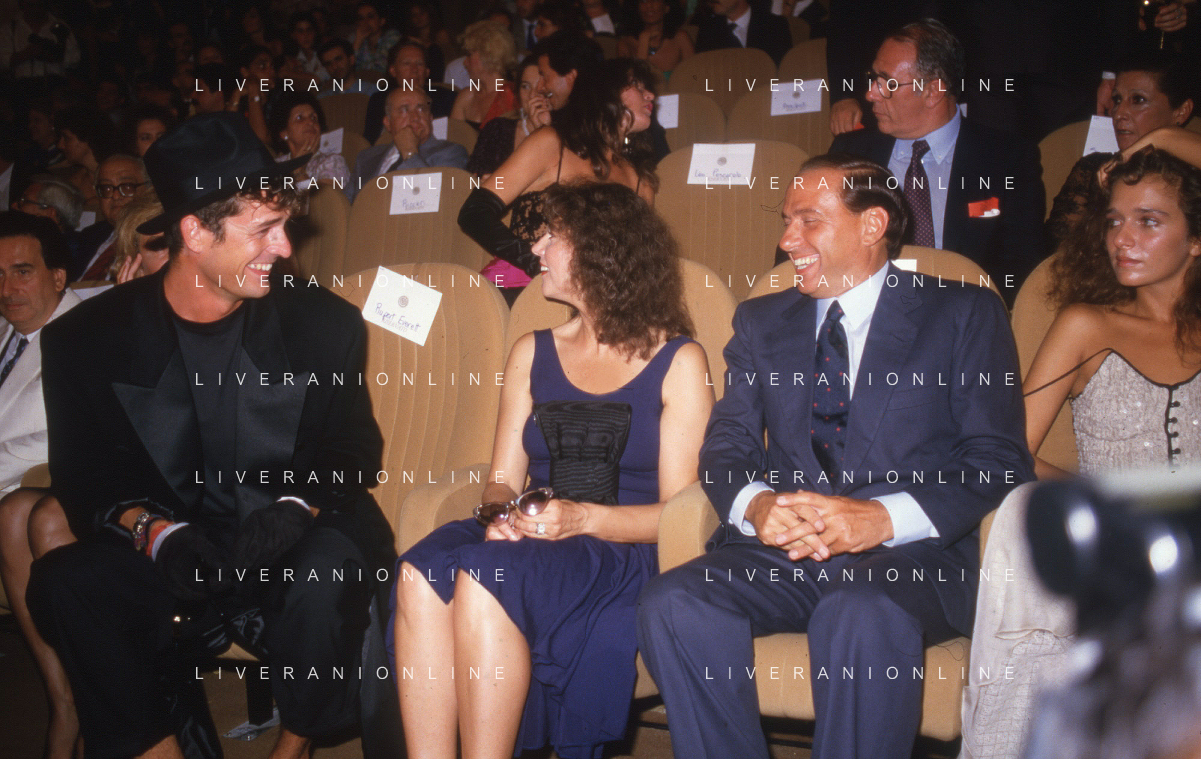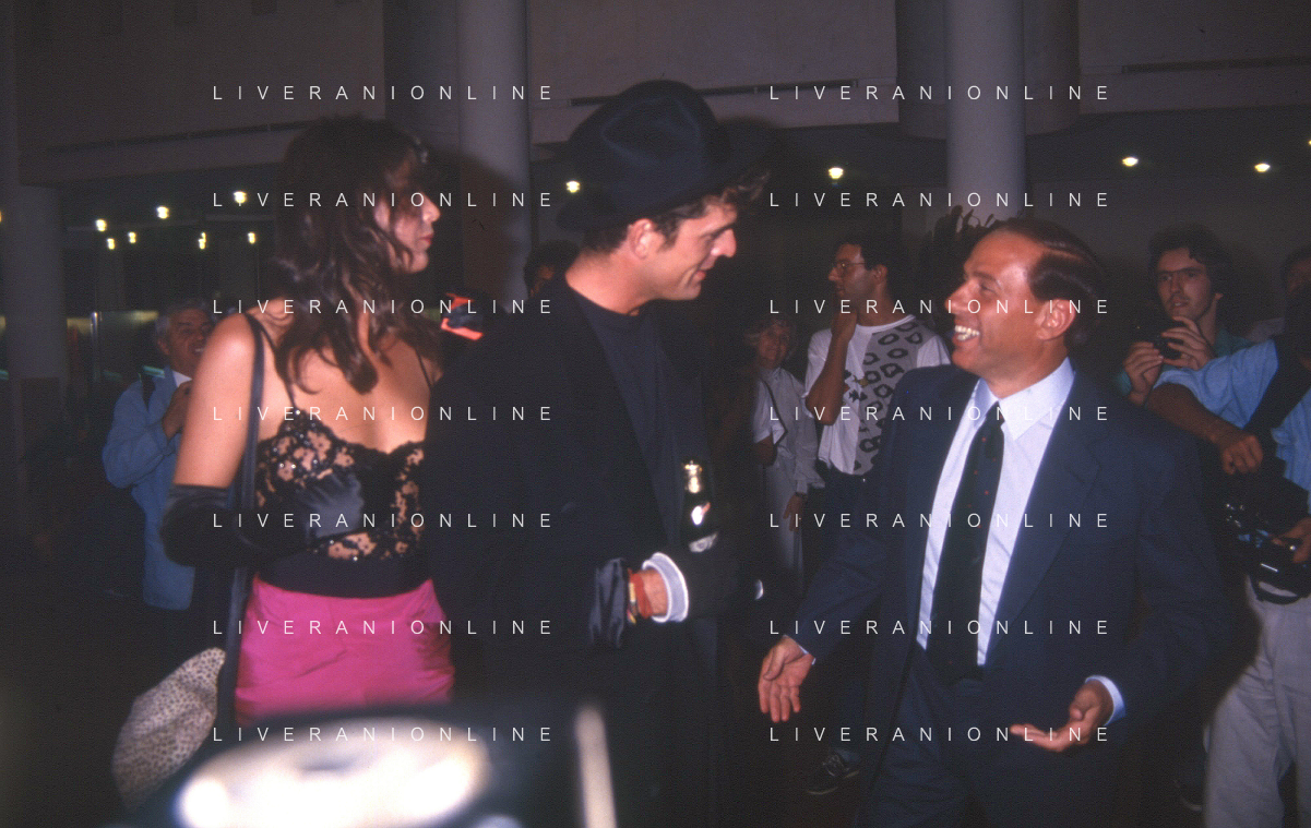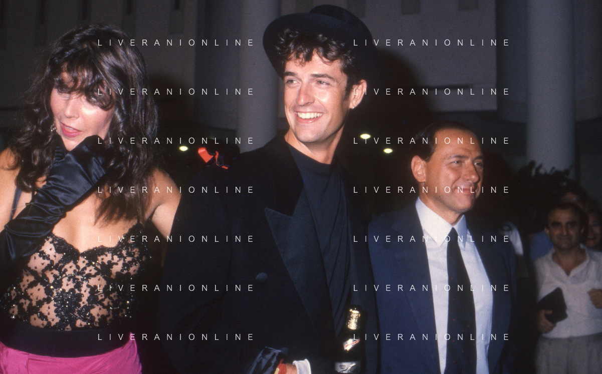 DIAP-RETROSPETTIVA RUPERT EVERETT ATTORE NELLA FOTO RUPERT EVERETT CON STEFANIA SANDRELLI SILVIO BERLUSCONI E VALERIA GOLINO A VENEZIA NELL'ANNO 1987 AG ALDO LIVERANI SAS