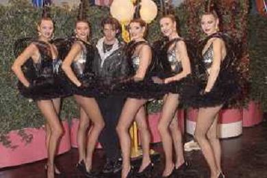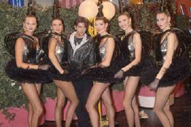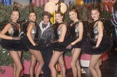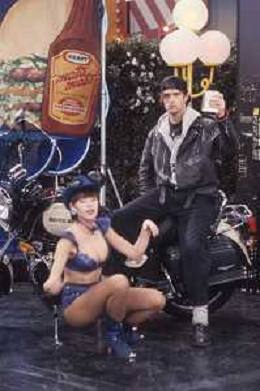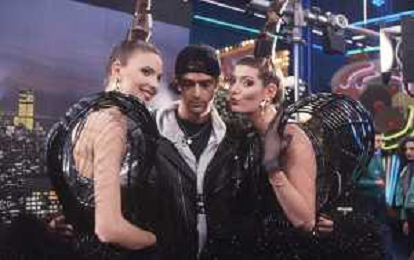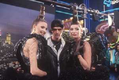DIAP-RETROSPETTIVA RUPERT EVERETT ATTORE NELLA FOTO RUPERT EVERETT CON LE BOMBERS OSPITE DELLA TRASMISSIONE TELEVISIVA “DRIVE IN“ NELL'ANNO 1988 A COLOGNO MONZESE AG ALDO LIVERANI SAS