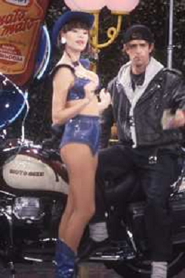 DIAP-RETROSPETTIVA RUPERT EVERETT ATTORE NELLA FOTO RUPERT EVERETT CON FRANCESCA OSPITE DELLA TRASMISSIONE TELEVISIVA “DRIVE IN“ NELL'ANNO 1988 A COLOGNO MONZESE AG ALDO LIVERANI SAS