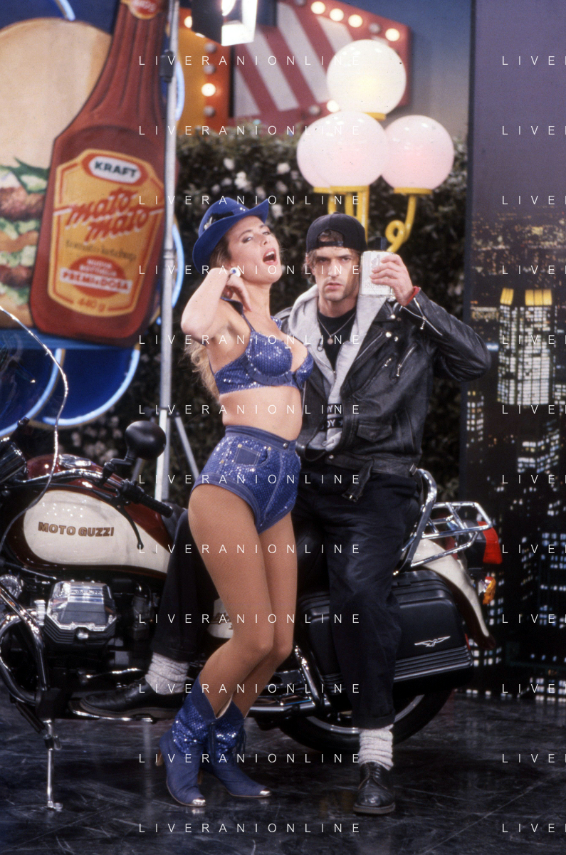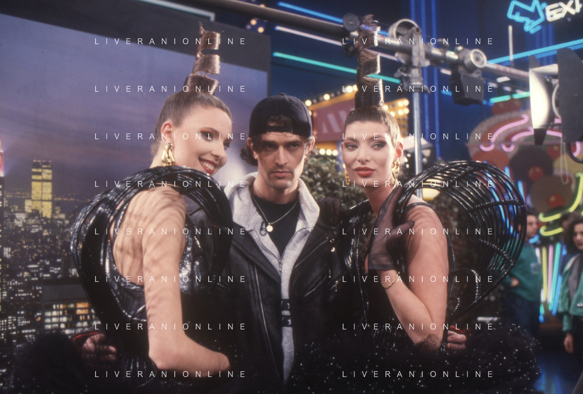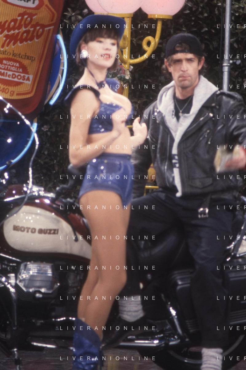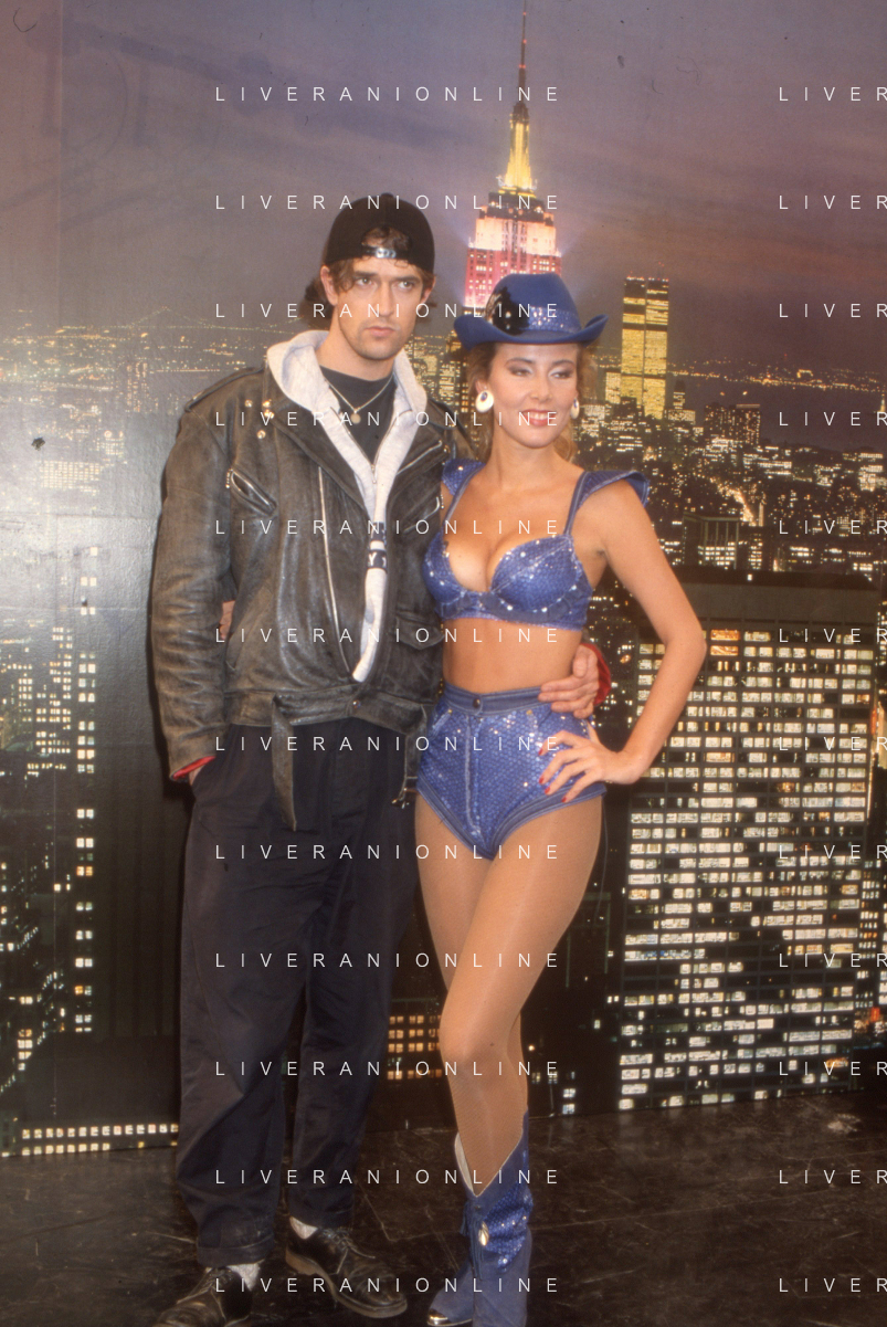 DIAP-RETROSPETTIVA RUPERT EVERETT ATTORE NELLA FOTO RUPERT EVERETT CON TINI CANSINO OSPITE DELLA TRASMISSIONE TELEVISIVA “DRIVE IN“ NELL'ANNO 1988 A COLOGNO MONZESE AG ALDO LIVERANI SAS