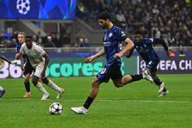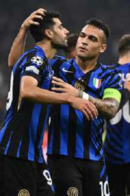 Inter vs Stella Rossa nella foto Lautaro Martinez (Inter) cede a Mehdi Taremi (Inter) la palla per il rigore del 4 a 0 Milano 01-10-2024 Stadio Giuseppe Meazza - San Siro UEFA Champions League fase a girone unico - 2a giornata foto Roberto Garavaglia/Agenzia Aldo Liverani sas/AGENZIA ALDO LIVERANI SAS