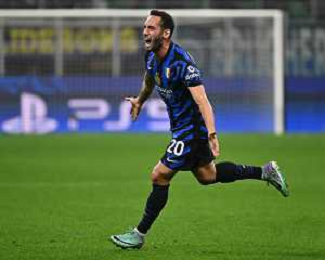 Inter vs Stella Rossa nella foto Hakan Calhanoglu (Inter) esultanza dopo il gol dell'1 a 0 Milano 01-10-2024 Stadio Giuseppe Meazza - San Siro UEFA Champions League fase a girone unico - 2a giornata foto Roberto Garavaglia/Agenzia Aldo Liverani sas/AGENZIA ALDO LIVERANI SAS