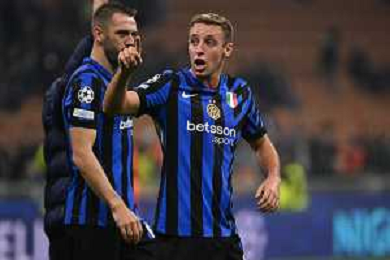 Inter vs Stella Rossa nella foto Denzel Dumfries (Inter) Milano 01-10-2024 Stadio Giuseppe Meazza - San Siro UEFA Champions League fase a girone unico - 2a giornata foto Roberto Garavaglia/Agenzia Aldo Liverani sas/AGENZIA ALDO LIVERANI SAS