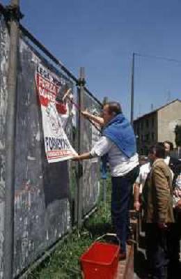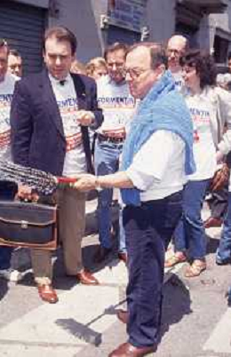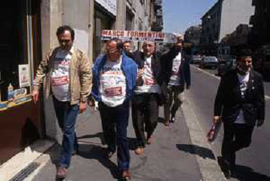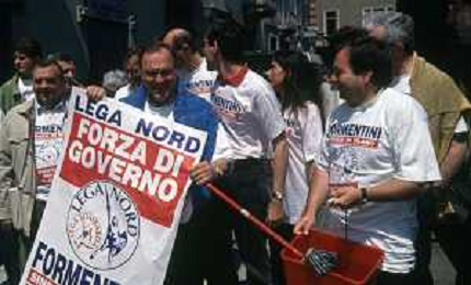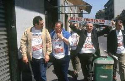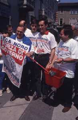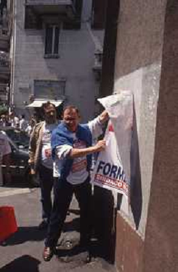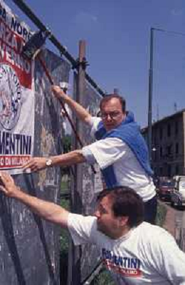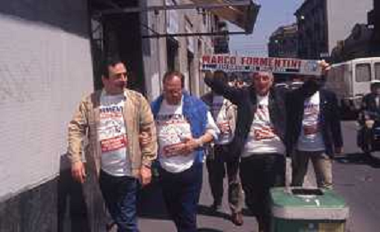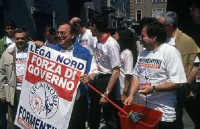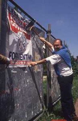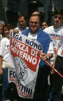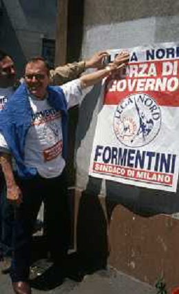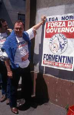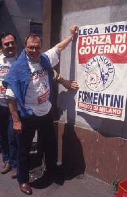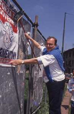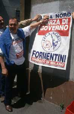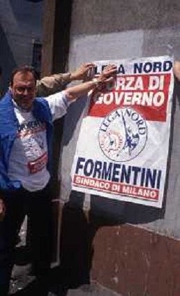 DIAP-RETROSPETTIVA MARCO FORMENTINI POLITICO NELLA FOTO MARCO FORMENTINI IN CAMPAGNA ELETTORALE PER LE VIE DI MILANO PER LEGA LOMBARDA NELL'ANNO 1993 PER L'ELEZIONE DA SINDACO DI MILANO AG CONTROLUCE-AG ALDO LIVERANI SAS