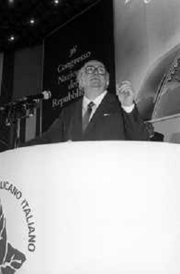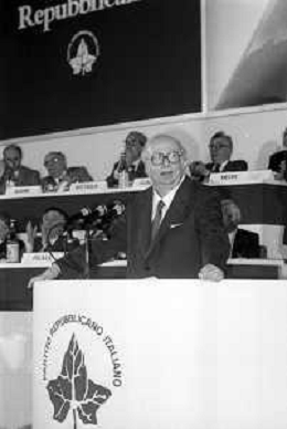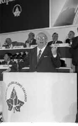 Neg- RETROSPETTIVA GIOVANNI SPADOLINI POLITICO NELLA FOTO GIOVANNI SPADOLINI AL 36mo CONGRESSO NAZIONALE DEI REPUBBLICANI NELL’ANNO 1987 - MICHELE CIFARELLI AG ALDO LIVERANI SAS