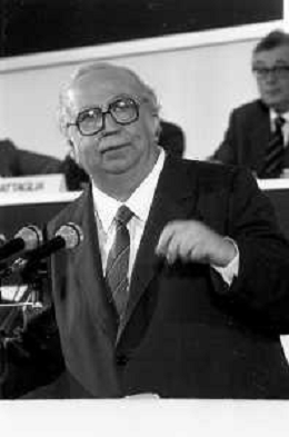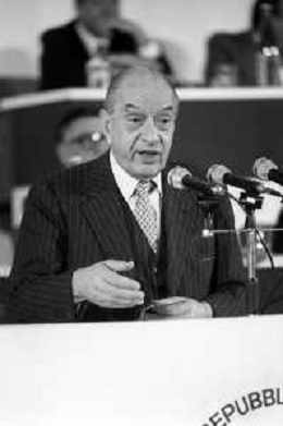 Neg- RETROSPETTIVA GIOVANNI SPADOLINI POLITICO NELLA FOTO GIOVANNI SPADOLINI AL 36mo CONGRESSO NAZIONALE DEI REPUBBLICANI NELL’ANNO 1987 AG ALDO LIVERANI SAS