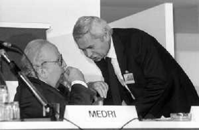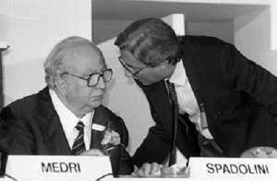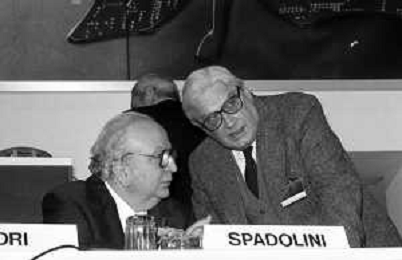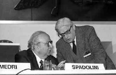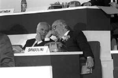Neg- RETROSPETTIVA GIOVANNI SPADOLINI POLITICO NELLA FOTO GIOVANNI SPADOLINI AL 36mo CONGRESSO NAZIONALE DEI REPUBBLICANI NELL’ANNO 1987 CON MICHELE CIFARELLI AG ALDO LIVERANI SAS