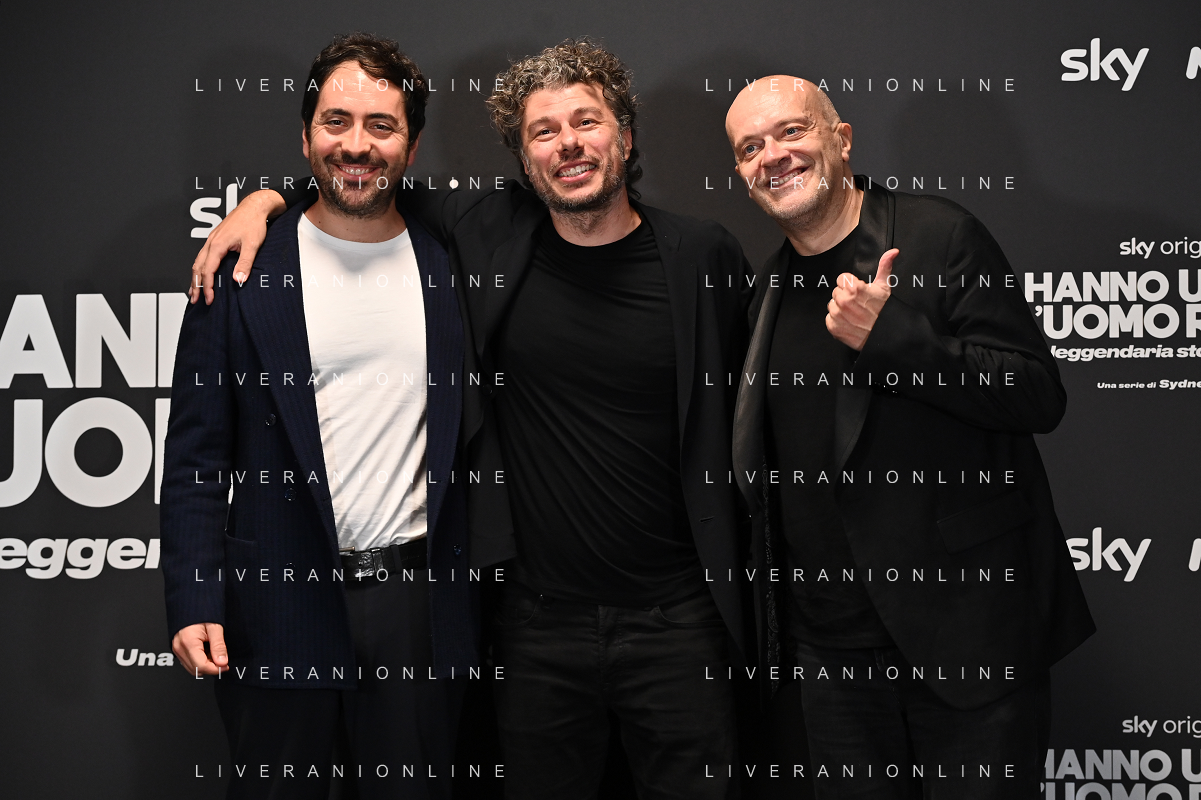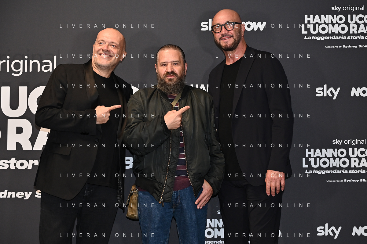TVRG Photocall Hanno Ucciso Uomo Ragno nella foto da SX Matteo Rovere, Sydney Sibilia e Max Pezzali Milano 03-10-2024 Photocall in occasione della presentazione della serie TV Hanno Ucciso l'Uomo Ragno foto Roberto Garavaglia/Agenzia Aldo Liverani sas