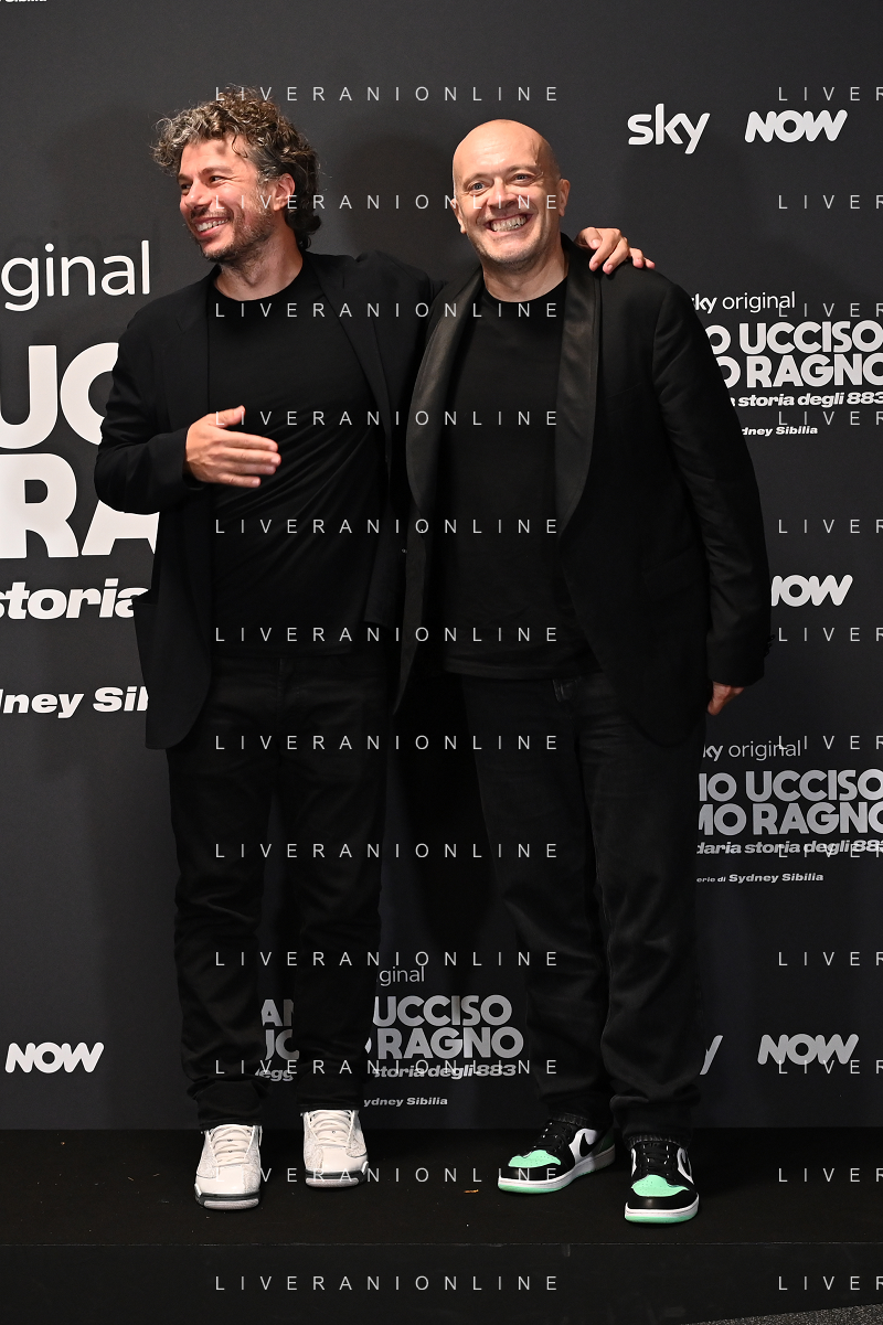 TVRG Photocall Hanno Ucciso Uomo Ragno nella foto Max Pezzali SX e Cisco Francesco Bertolotti DX Milano 03-10-2024 Photocall in occasione della presentazione della serie TV Hanno Ucciso l'Uomo Ragno foto Roberto Garavaglia/Agenzia Aldo Liverani sas