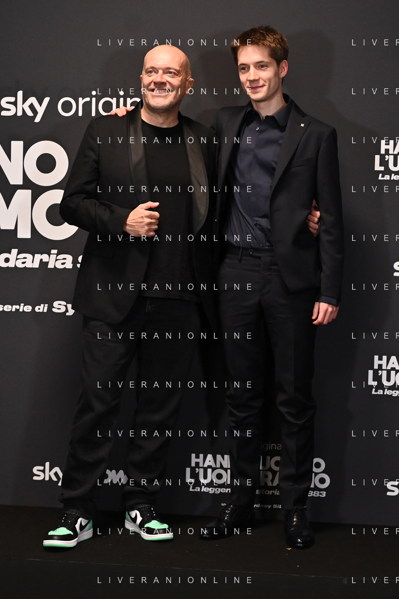 TVRG Photocall Hanno Ucciso Uomo Ragno nella foto Max Pezzali ed Elia Nuzzolo Milano 03-10-2024 Photocall in occasione della presentazione della serie TV Hanno Ucciso l'Uomo Ragno foto Roberto Garavaglia/Agenzia Aldo Liverani sas