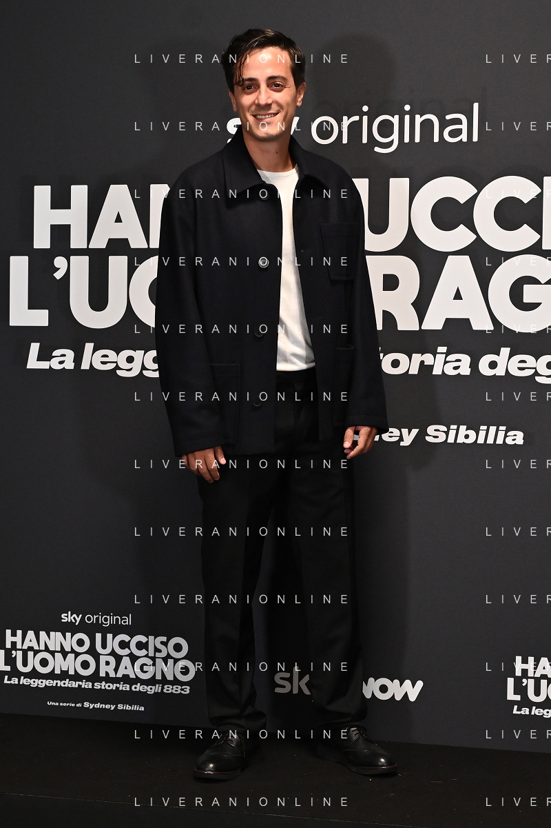TVRG Photocall Hanno Ucciso Uomo Ragno nella foto Francesco Ebbasta Milano 03-10-2024 Photocall in occasione della presentazione della serie TV Hanno Ucciso l'Uomo Ragno foto Roberto Garavaglia/Agenzia Aldo Liverani sas