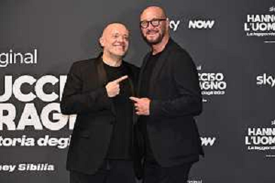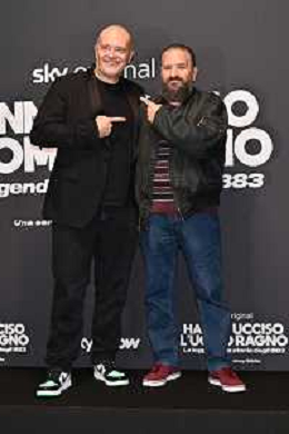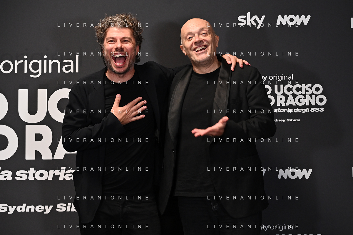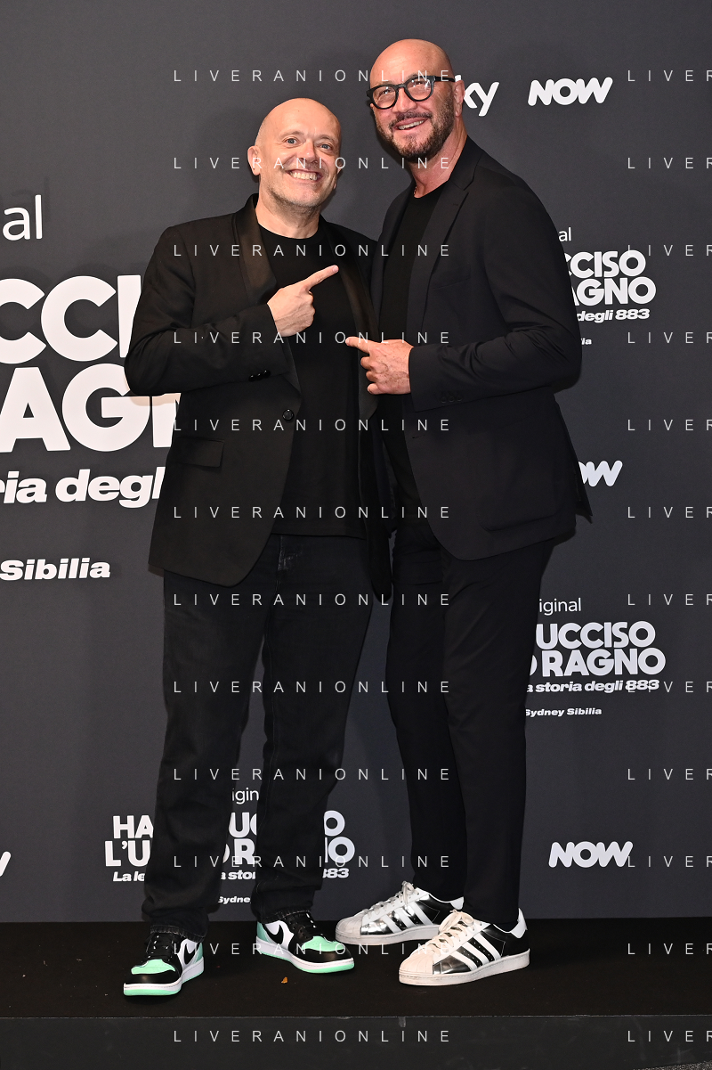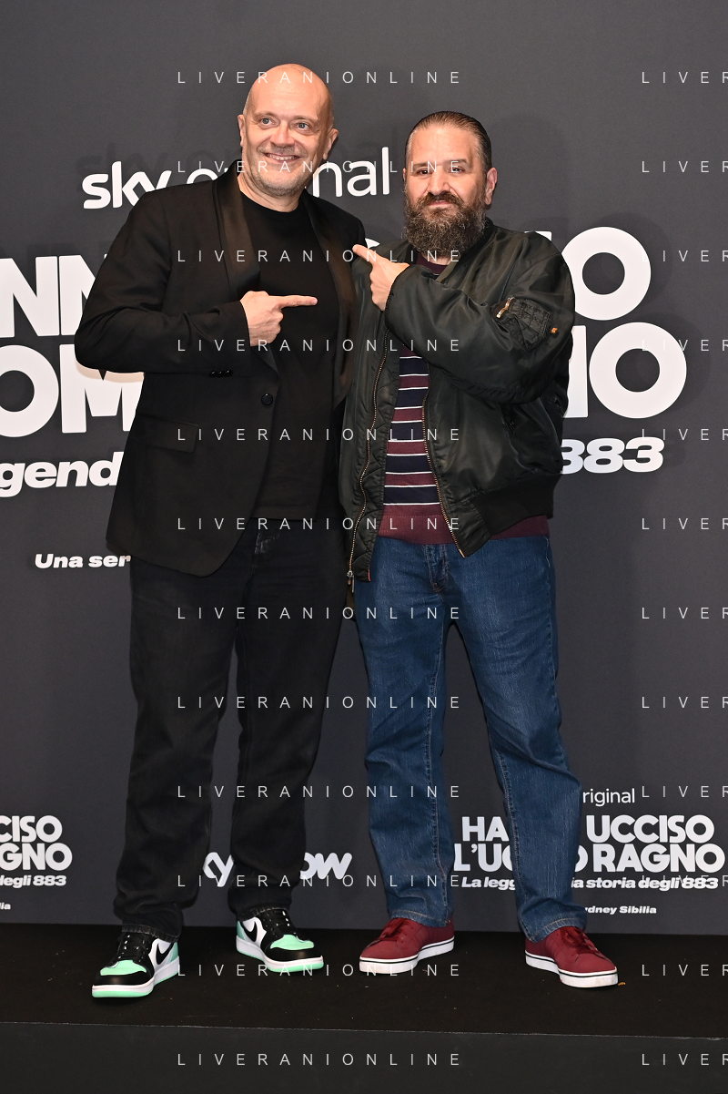 TVRG Photocall Hanno Ucciso Uomo Ragno nella foto Max Pezzali SX e Cisco Francesco Bertolotti DX Milano 03-10-2024 Photocall in occasione della presentazione della serie TV Hanno Ucciso l'Uomo Ragno foto Roberto Garavaglia/Agenzia Aldo Liverani sas
