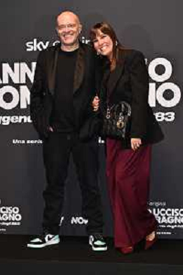 TVRG Photocall Hanno Ucciso Uomo Ragno nella foto Andrea Duilio con la moglie Raffaella Milano 03-10-2024 Photocall in occasione della presentazione della serie TV Hanno Ucciso l'Uomo Ragno foto Roberto Garavaglia/Agenzia Aldo Liverani sas