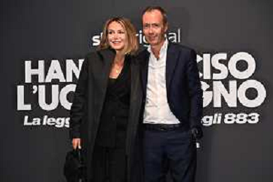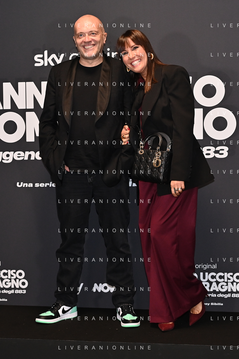 TVRG Photocall Hanno Ucciso Uomo Ragno nella foto Max Pezzali e Debora Pelamatti Milano 03-10-2024 Photocall in occasione della presentazione della serie TV Hanno Ucciso l'Uomo Ragno foto Roberto Garavaglia/Agenzia Aldo Liverani sas