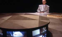 NELLA FOTO ENZO BIAGI NELLA TRASMISSIONE TELEVISIVA “IL CASO“ NELL'ANNO 1985