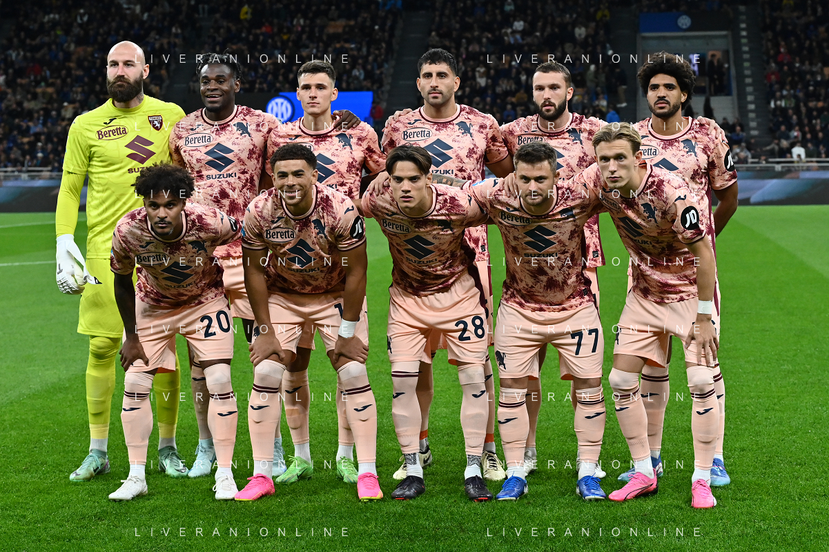 Inter vs Torino nella foto formazione Torino, in piedi da SX Vanja Milinkovic-Savic, Duvan Zapata, Gvidas Gineitis, Guillermo Maripan, Sebastian Walukiewicz e Saul Coco; in basso da SX Valentino Lazaro, Chè Adams, Samuele Ricci, Karol Linetty e Marcus Pedersen Milano 05-10-2024 Stadio Giuseppe Meazza - San Siro Campionato Serie A Enilive - 7a giornata foto Roberto Garavaglia/Agenzia Aldo Liverani sas