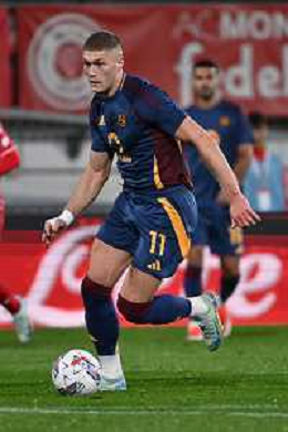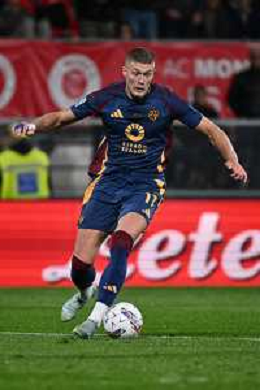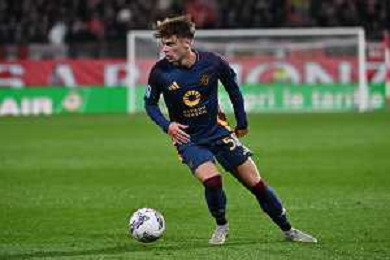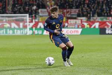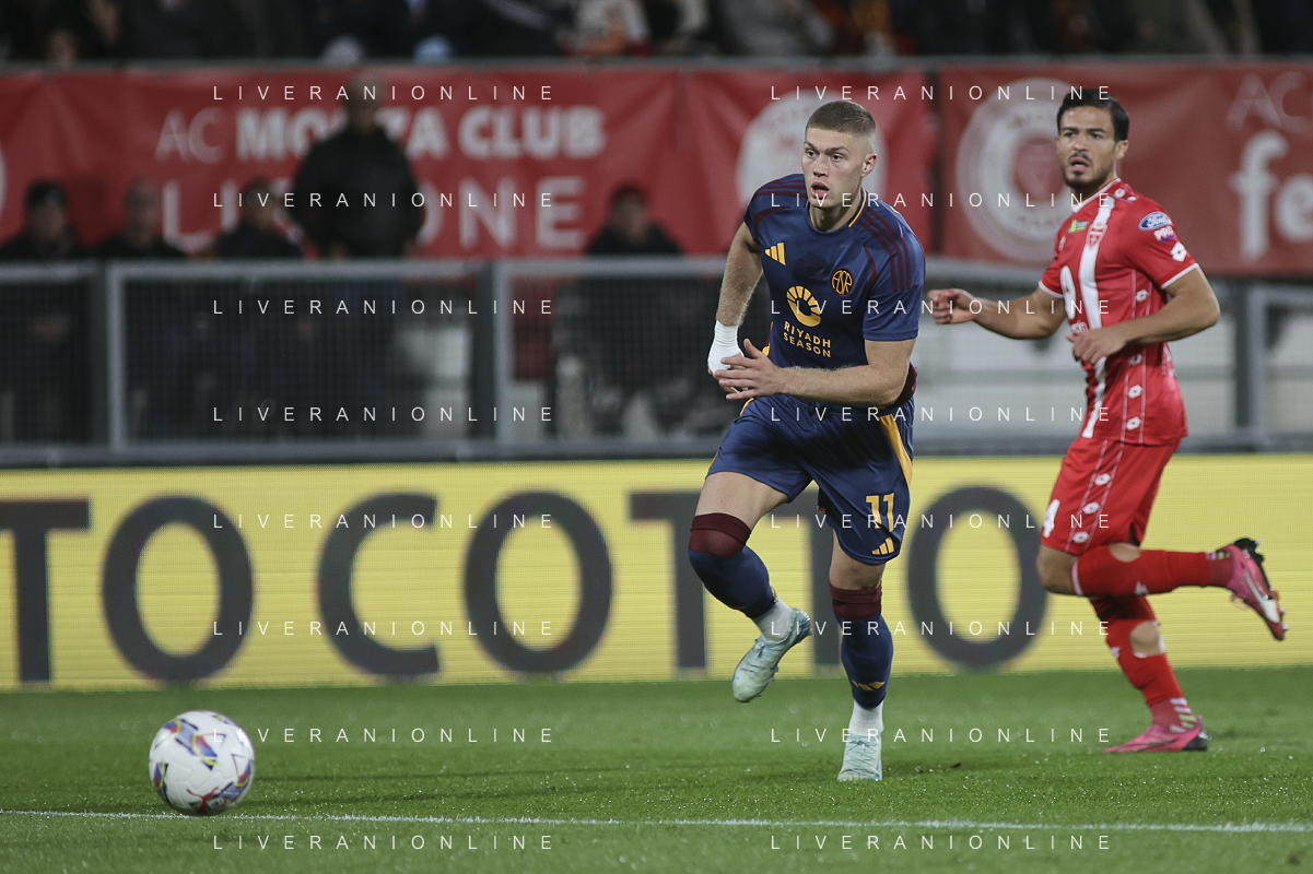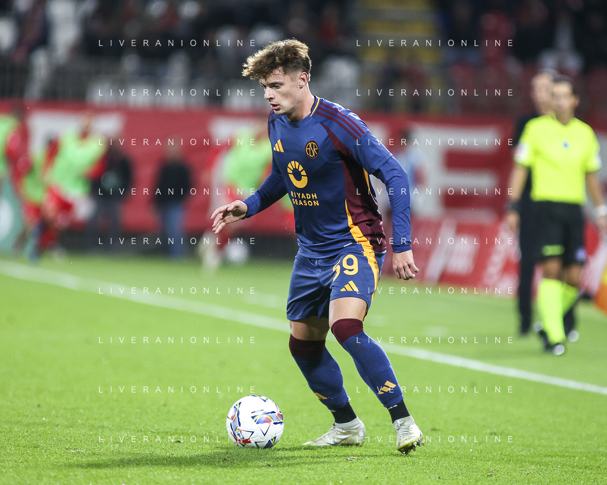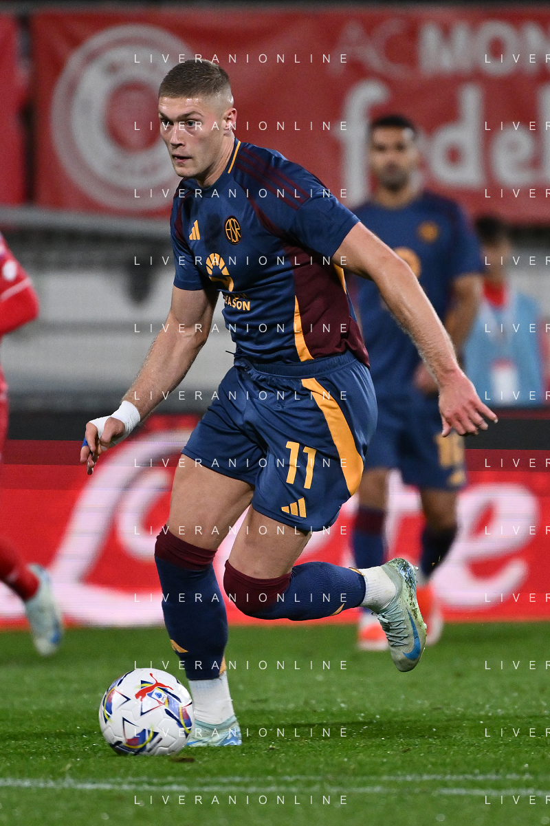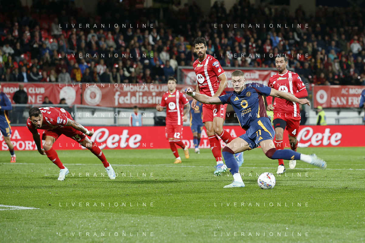 Nicola Zalewski of AS Roma play the ball during AC Monza vs AS Roma, 7° Serie A Enilive 2024-25 game at U-Power stadium in Monza (MB), Italy, on October 06, 2024. (Photo by Davide Casentini) ag aldo liverani sas