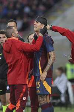 Gianluca Mancini of AS Roma incident during AC Monza vs AS Roma, 7° Serie A Enilive 2024-25 game at U-Power stadium in Monza (MB), Italy, on October 06, 2024. (Photo by Davide Casentini) ag aldo liverani sas
