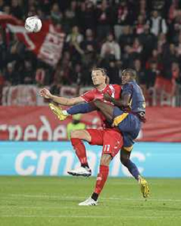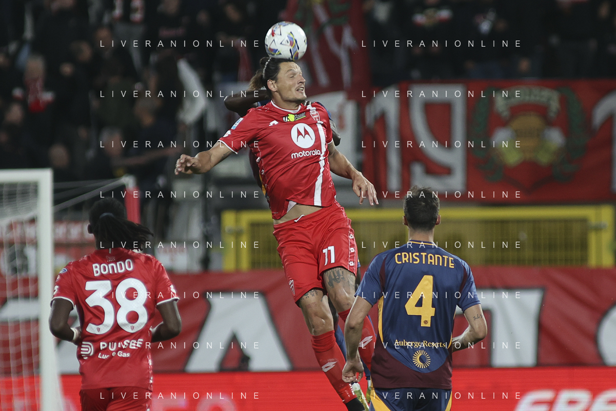 Milan Djuric of AC Monza heads the ball during AC Monza vs AS Roma, 7° Serie A Enilive 2024-25 game at U-Power stadium in Monza (MB), Italy, on October 06, 2024. (Photo by Davide Casentini) ag aldo liverani sas