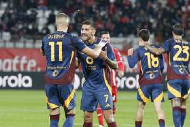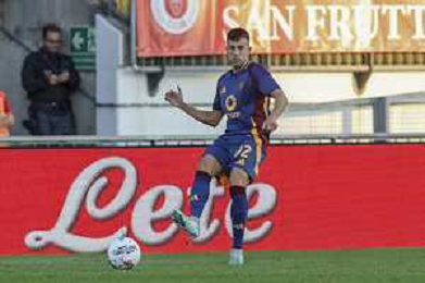 Lorenzo Pellegrini of AS Roma play the ball during AC Monza vs AS Roma, 7° Serie A Enilive 2024-25 game at U-Power stadium in Monza (MB), Italy, on October 06, 2024. (Photo by Davide Casentini) ag aldo liverani sas