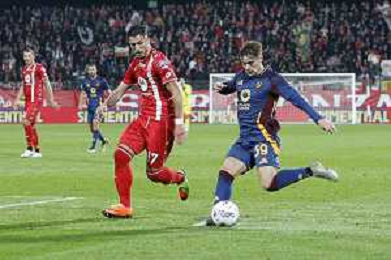Nicola Zalewski of AS Roma battle for the ball with Danilo D'Ambrosio of AC Monza during AC Monza vs AS Roma, 7° Serie A Enilive 2024-25 game at U-Power stadium in Monza (MB), Italy, on October 06, 2024. (Photo by Davide Casentini) ag aldo liverani sas