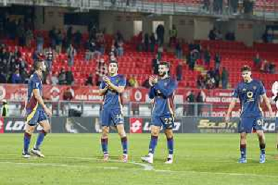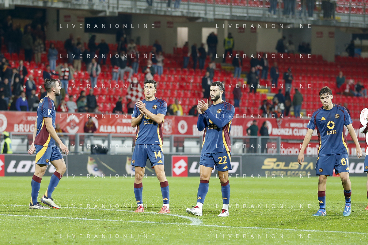 Roma players applaud the fans following the final whistle during AC Monza vs AS Roma, 7° Serie A Enilive 2024-25 game at U-Power stadium in Monza (MB), Italy, on October 06, 2024. (Photo by Davide Casentini) ag aldo liverani sas