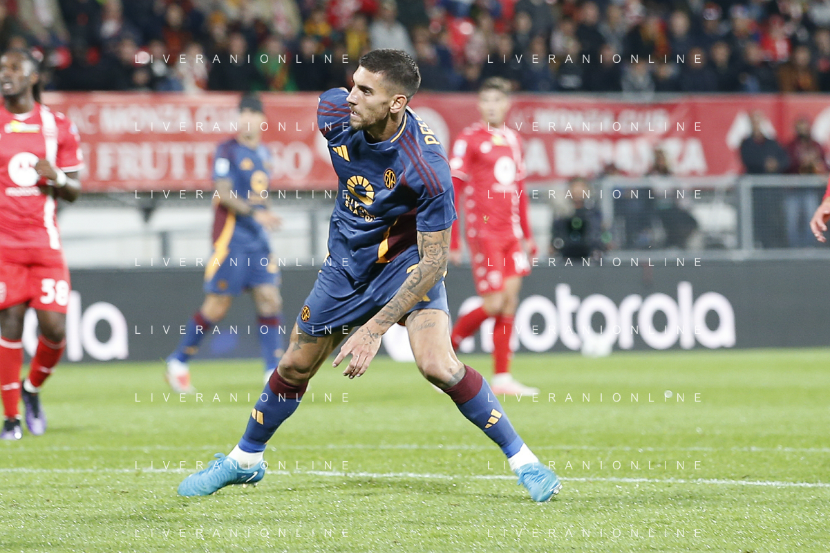 Lorenzo Pellegrini of AS Roma kick the ball during AC Monza vs AS Roma, 7° Serie A Enilive 2024-25 game at U-Power stadium in Monza (MB), Italy, on October 06, 2024. (Photo by Davide Casentini) ag aldo liverani sas