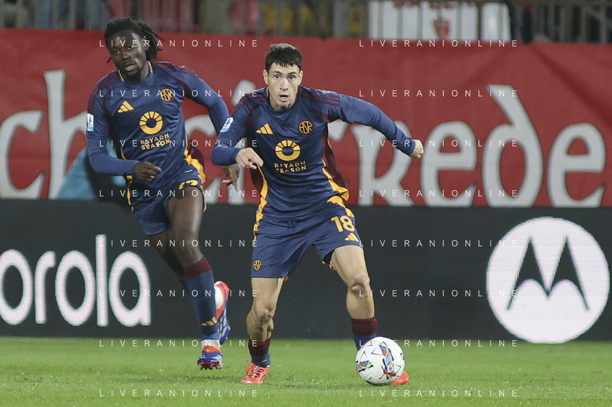 Matías Soulé of AS Roma play the ball during AC Monza vs AS Roma, 7° Serie A Enilive 2024-25 game at U-Power stadium in Monza (MB), Italy, on October 06, 2024. (Photo by Davide Casentini) ag aldo liverani sas