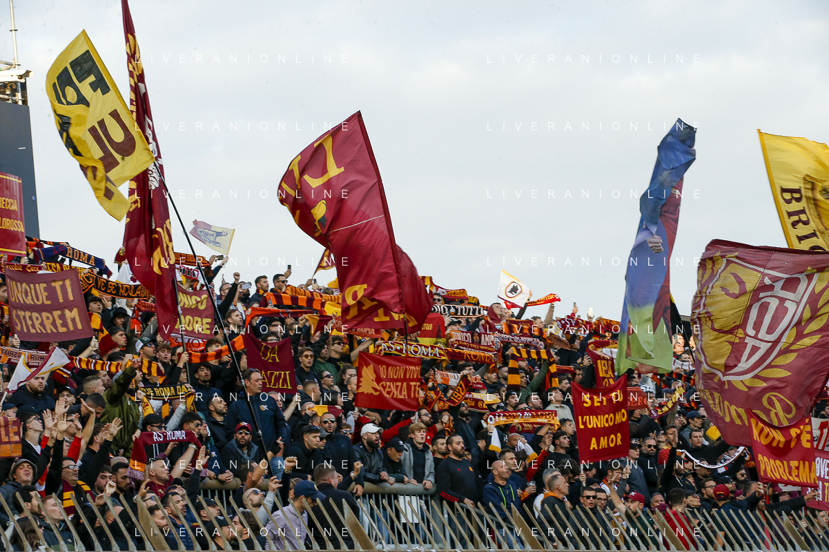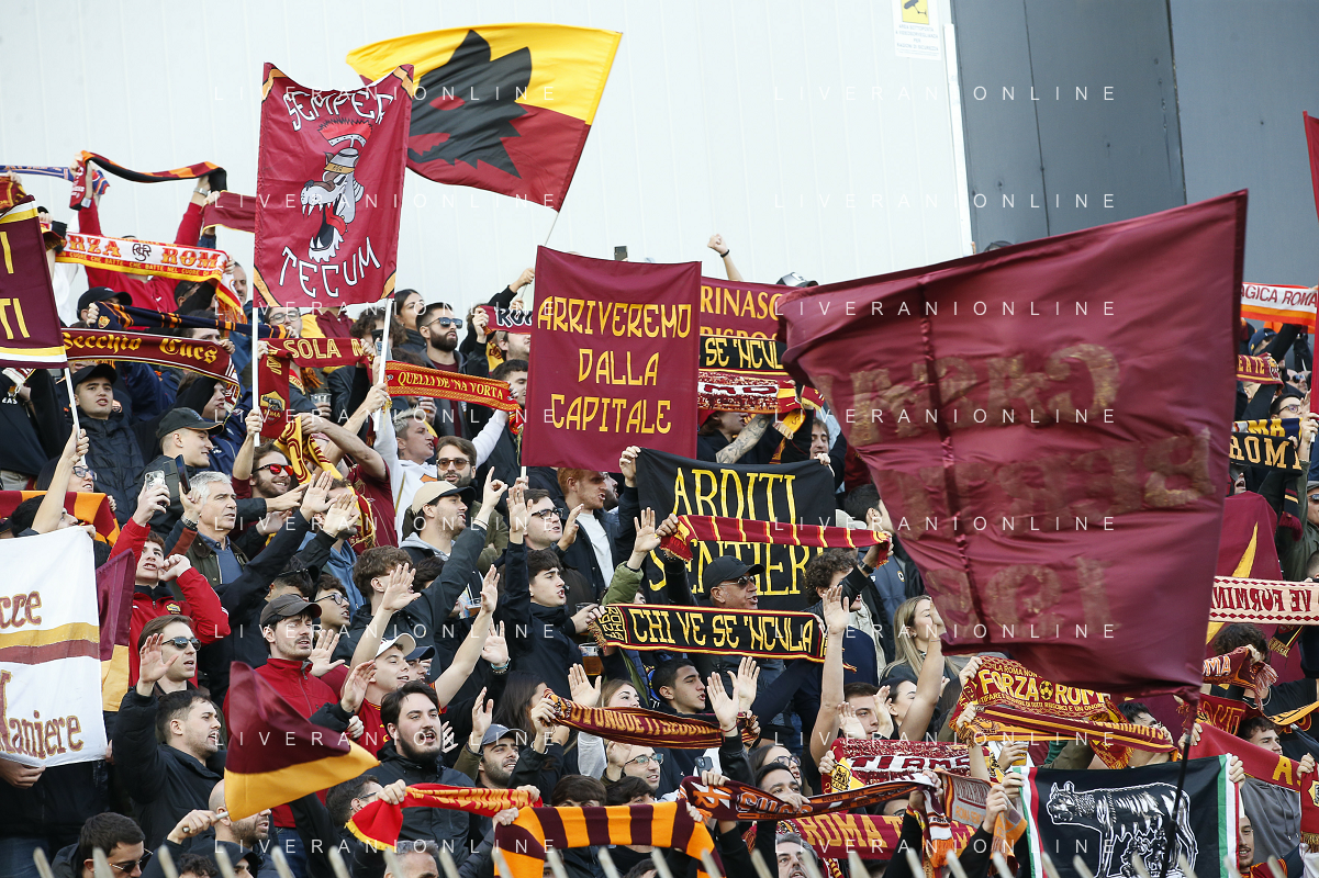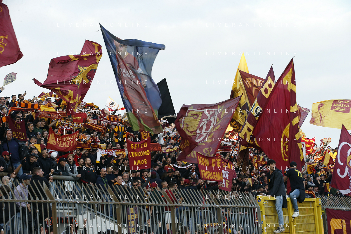 Roma fans show their support during AC Monza vs AS Roma, 7° Serie A Enilive 2024-25 game at U-Power stadium in Monza (MB), Italy, on October 06, 2024. (Photo by Davide Casentini) ag aldo liverani sas