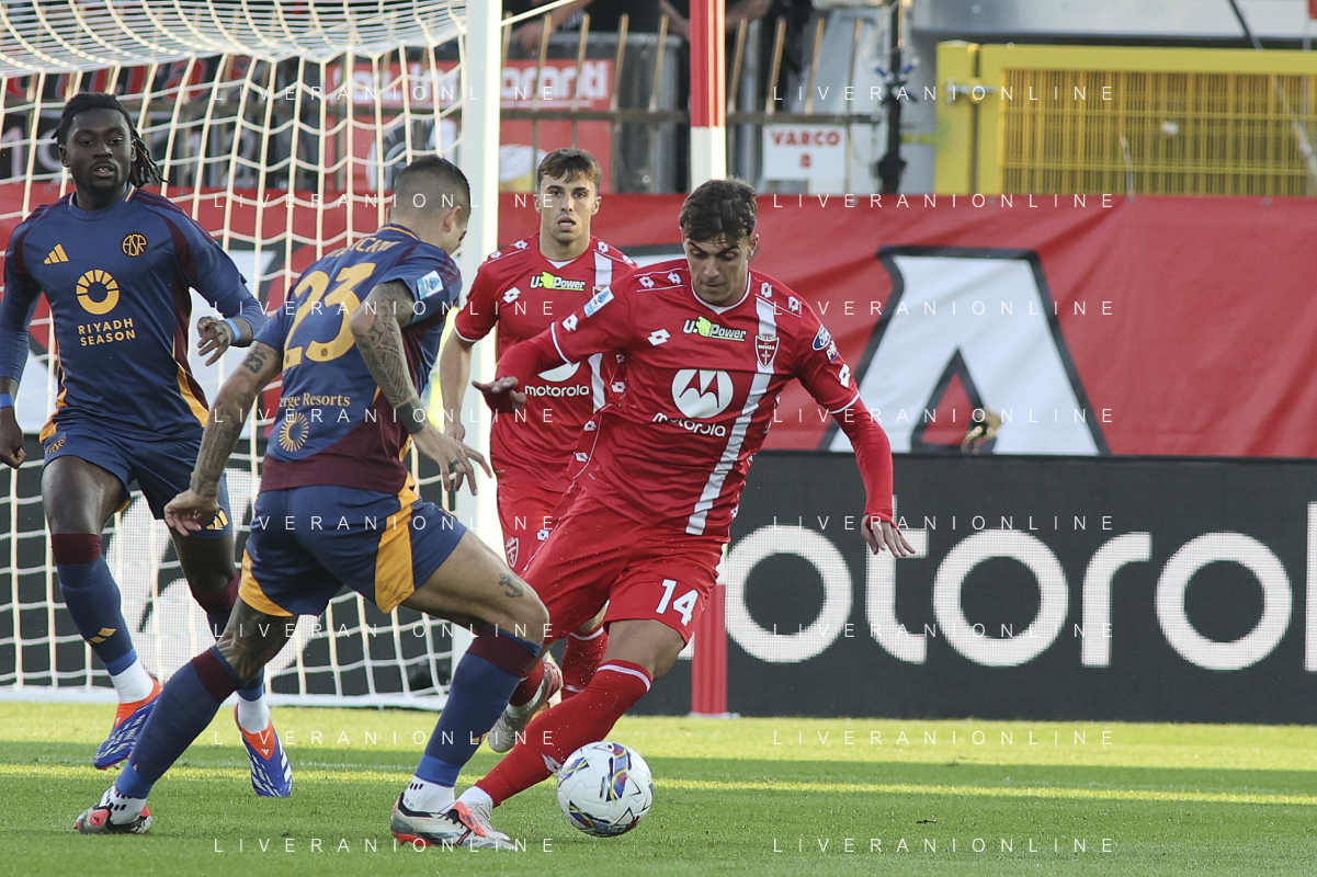 Andrea Carboni of AC Monza play the ball during AC Monza vs AS Roma, 7° Serie A Enilive 2024-25 game at U-Power stadium in Monza (MB), Italy, on October 06, 2024. (Photo by Davide Casentini) ag aldo liverani sas
