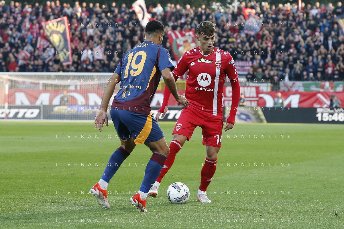 Daniel Maldini of AC Monza play the ball during AC Monza vs AS Roma, 7° Serie A Enilive 2024-25 game at U-Power stadium in Monza (MB), Italy, on October 06, 2024. (Photo by Davide Casentini) ag aldo liverani sas