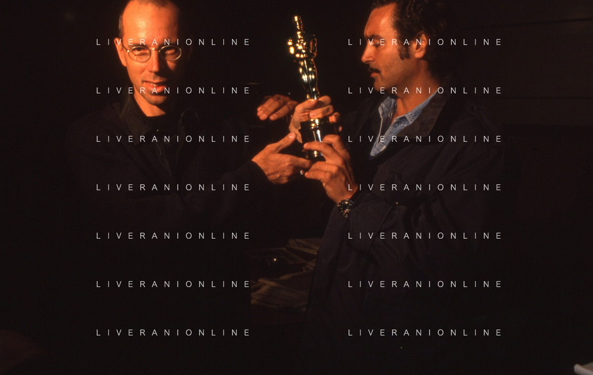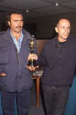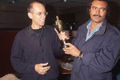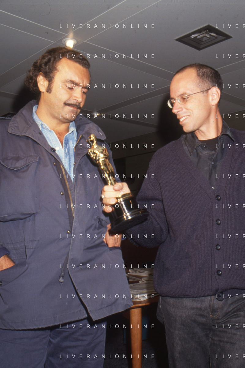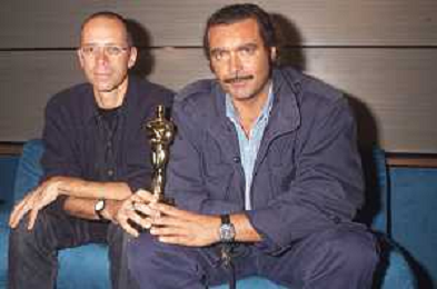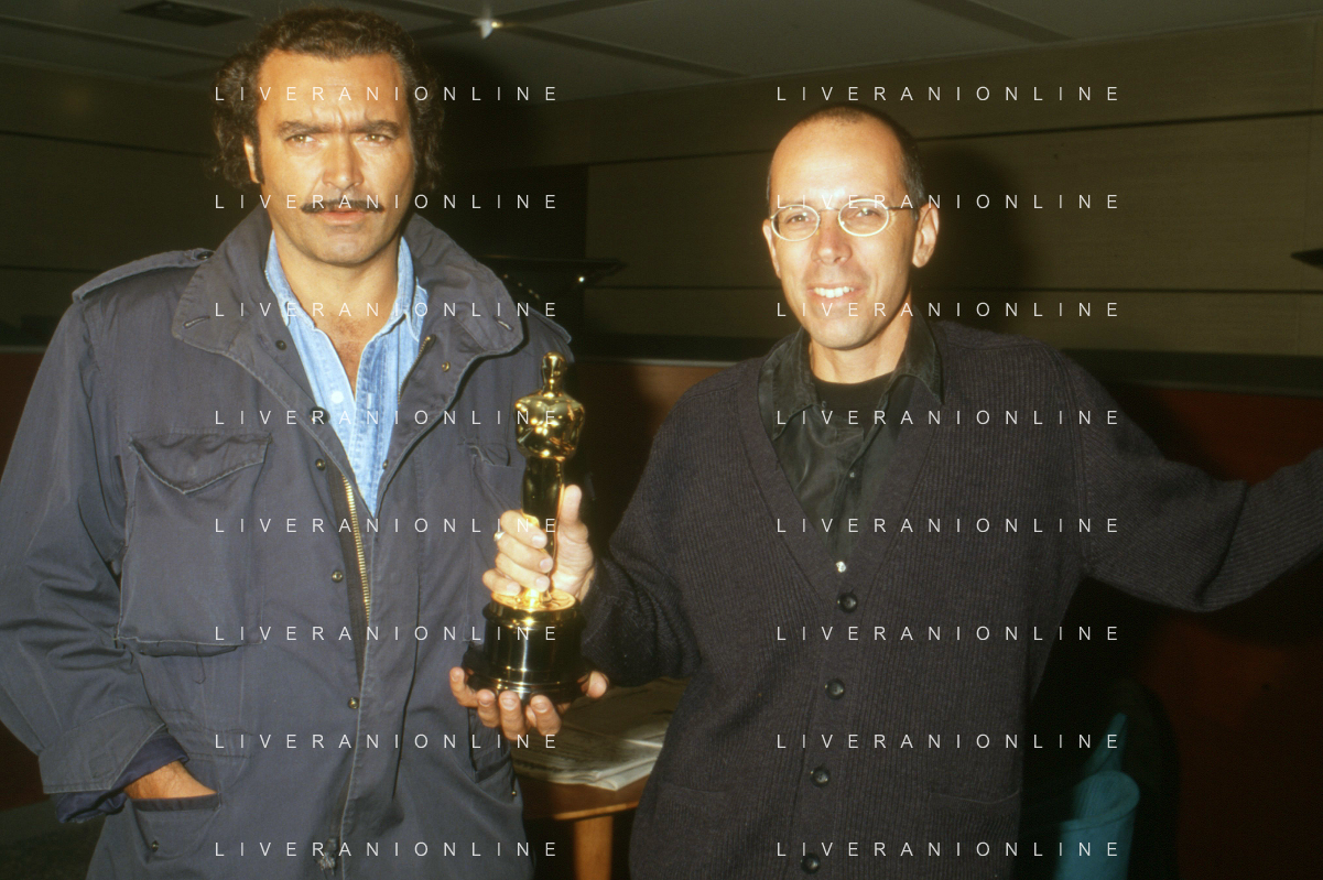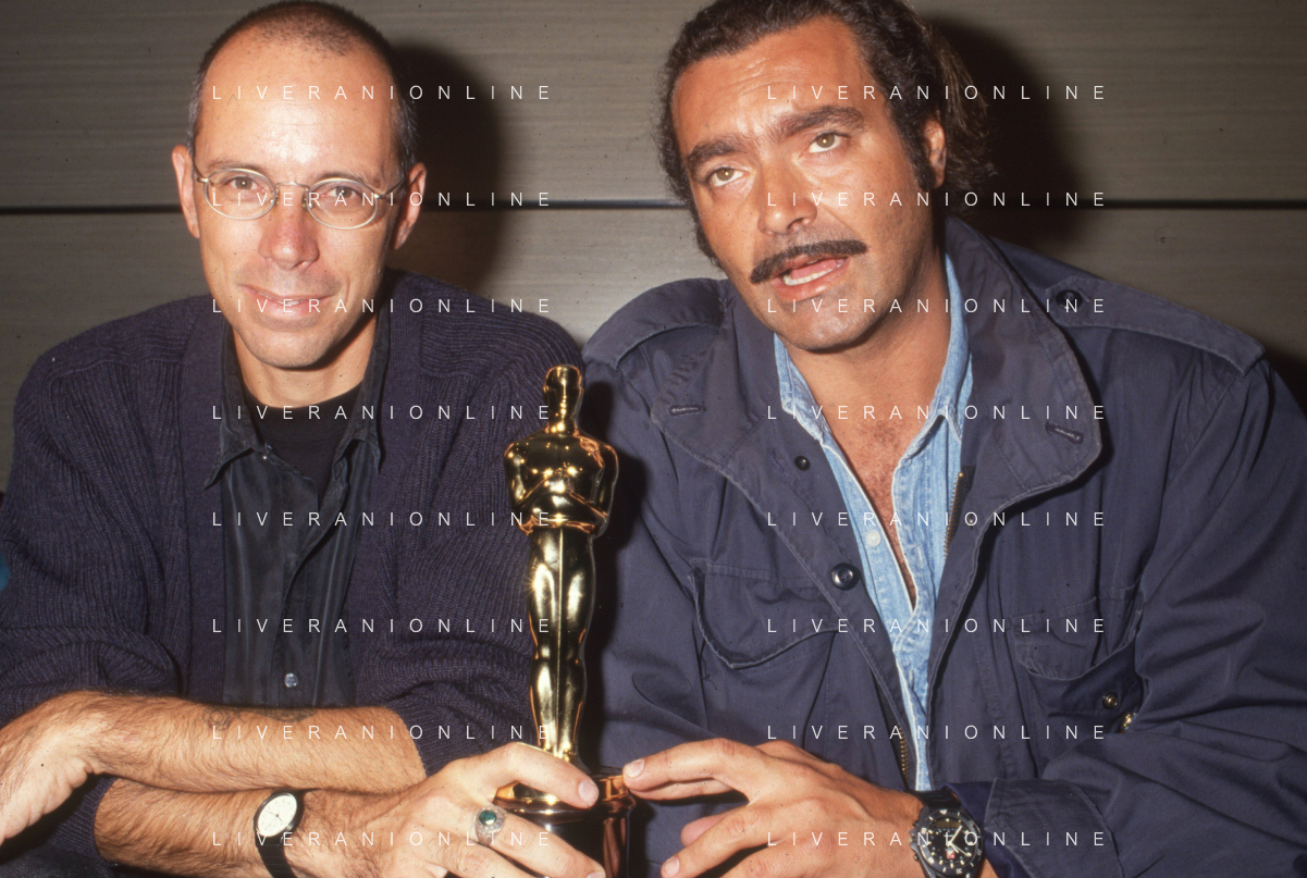 DIAP-RETROSPETTIVA DIEGO ABATANTUONO ATTORE NELLA FOTO DIEGO ABATANTUONO CON GABRIELE SALVATORES CON LA STATUETTA DELL'OSCAR PER IL FILM “MEDITERRANEO “ANNO 1991 AG ALDO LIVERANI SAS