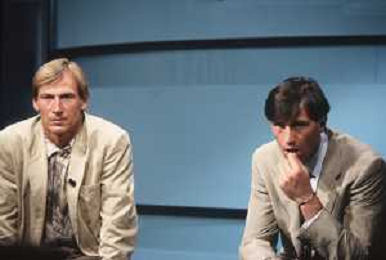 DIAP-RETROSPETTIVA ZDENEK ZEMAN ALLENATORE NELLA FOTO ZDENEK ZEMAN OSPITE DELLA TRASMISSIONE TELEVISIVA “GALAGOAL“ ANNO 1991 CON WALTER ZENGA AG ALDO LIVERANI SAS