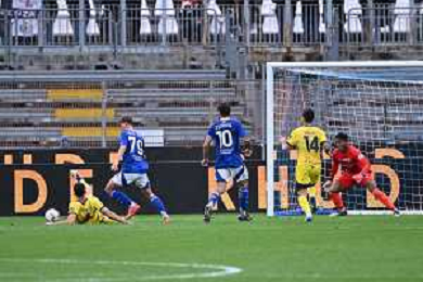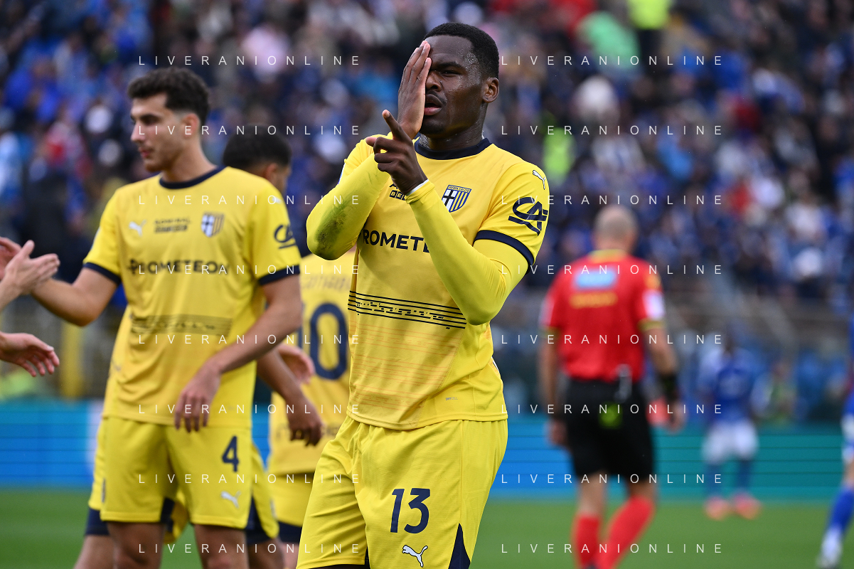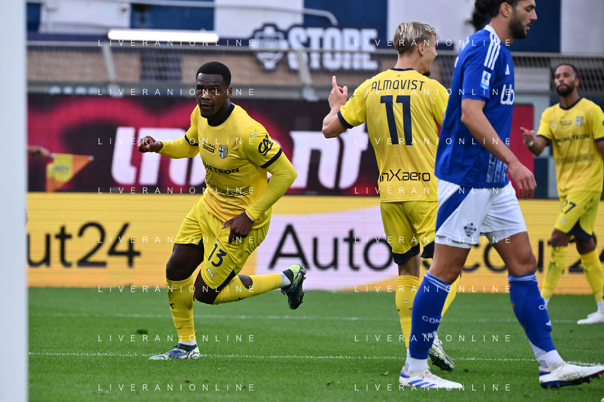 TVRG Como vs Parma nella foto Ange-Yoan Bonny (Parma) esultanza dopo il gol dell'1 a 0 Como 19-10-2024 Stadio Giuseppe Sinigaglia Campionato Serie A Enilive - 8a giornata foto Roberto Garavaglia/Agenzia Aldo Liverani sas