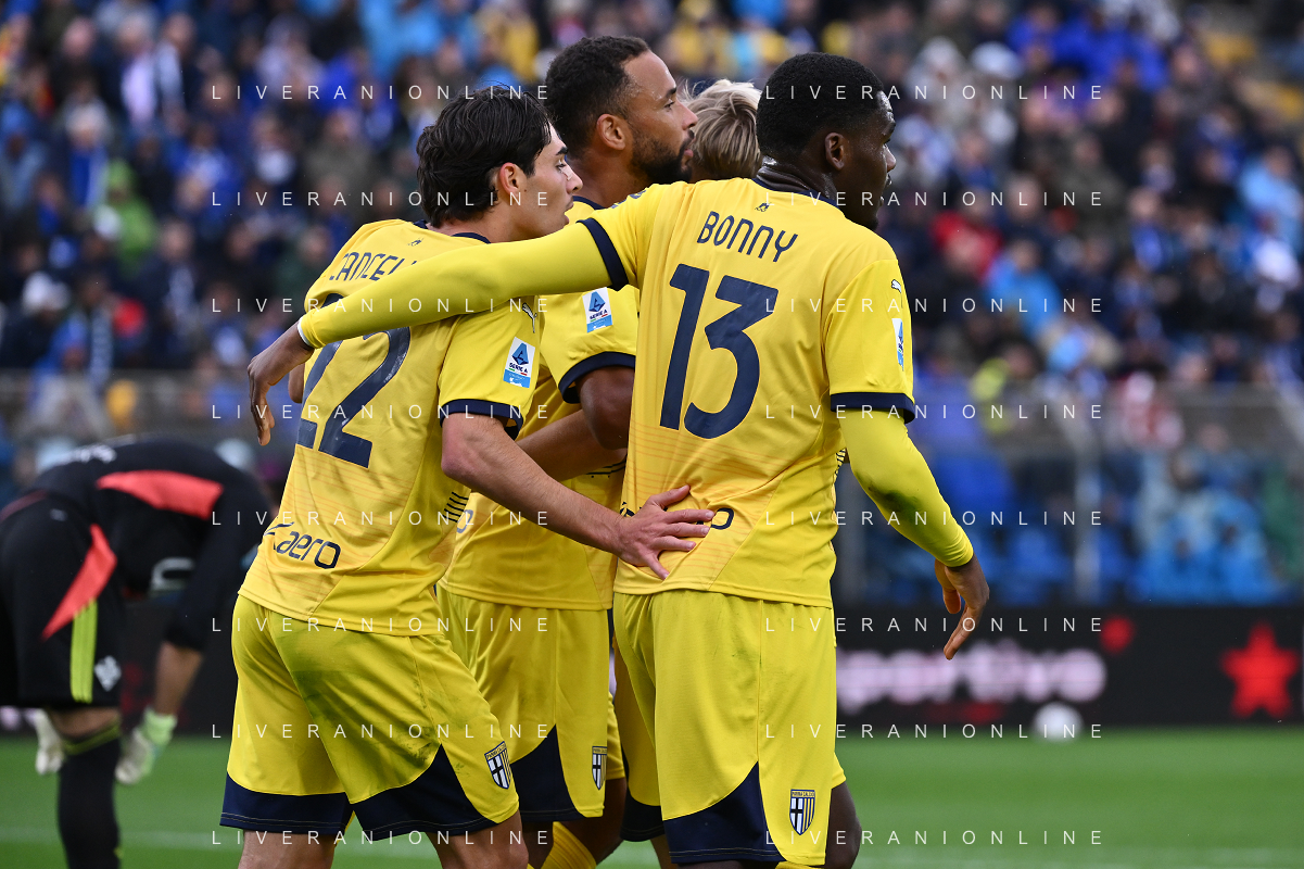 TVRG Como vs Parma nella foto esultanza Parma dopo il gol dell'1 a 0 Como 19-10-2024 Stadio Giuseppe Sinigaglia Campionato Serie A Enilive - 8a giornata foto Roberto Garavaglia/Agenzia Aldo Liverani sas